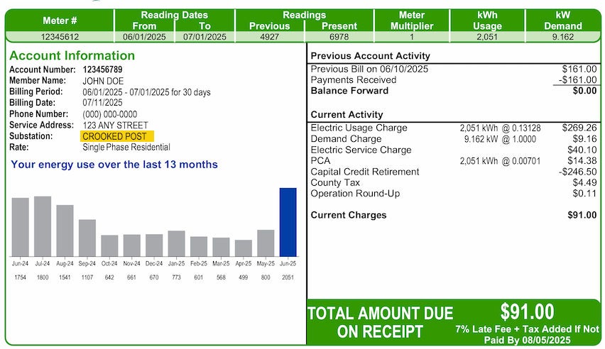 FreeState does print your substation information on your monthly bill. Your substation is where your power comes from. You can find your substation by looking on the back of your bill and finding the area highlighted below.